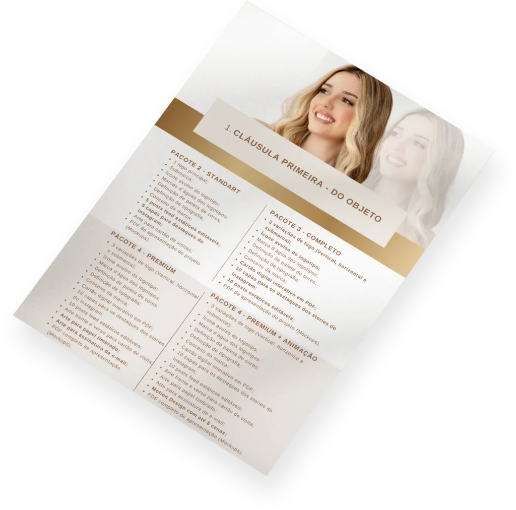 Com ele, você fecha projetos com clareza, segurança e profissionalismo, sem abrir mão do seu estilo.